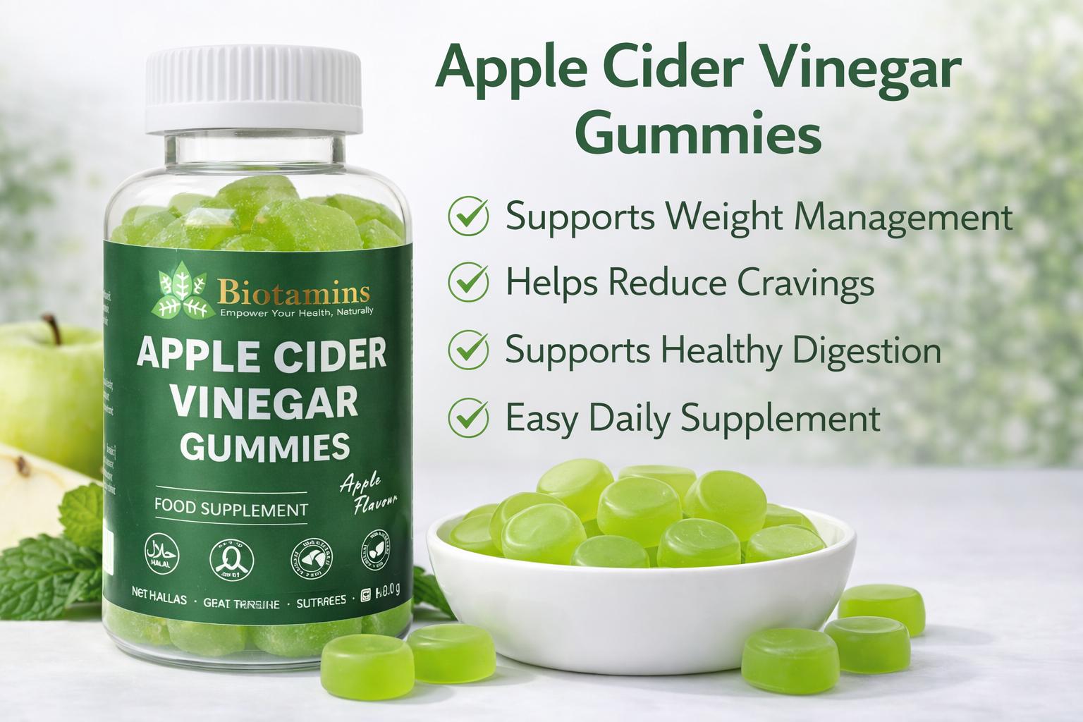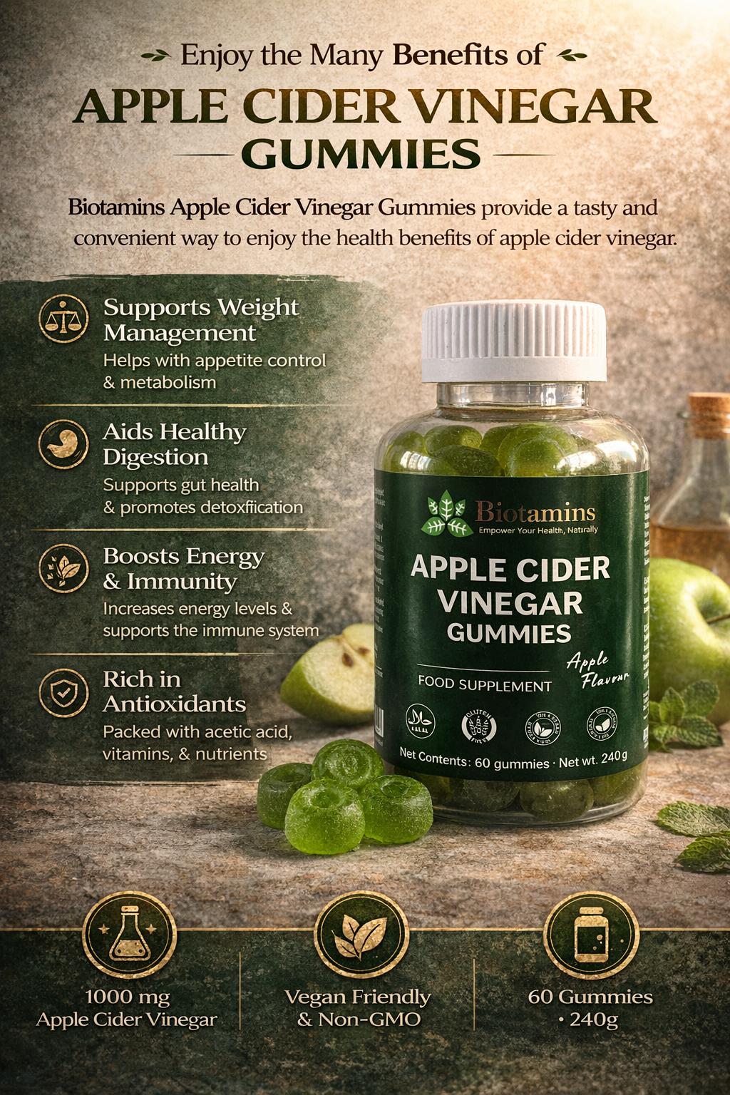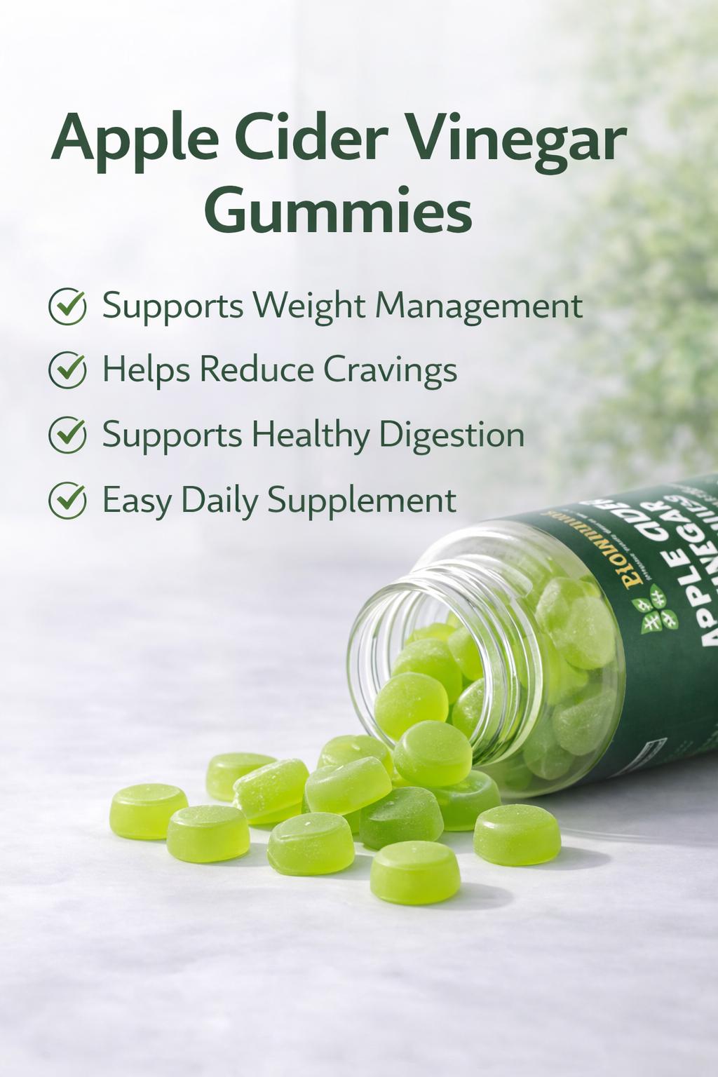 - 1000mg Apple Cider Vinegar per serving (2 gummies)