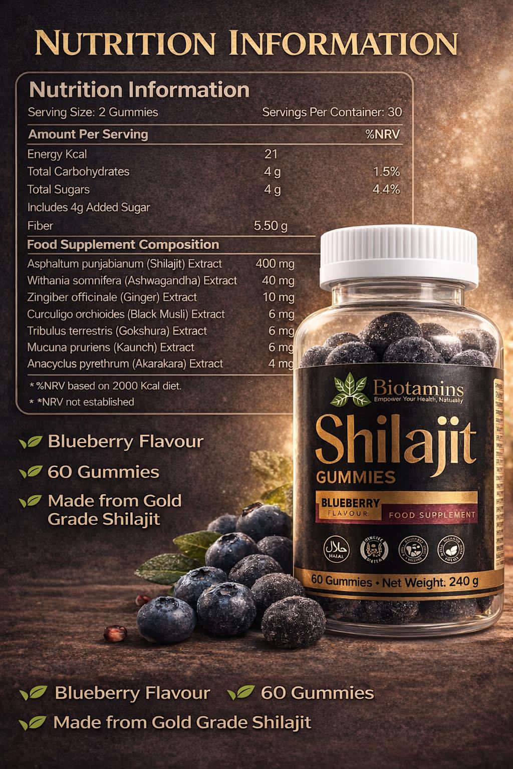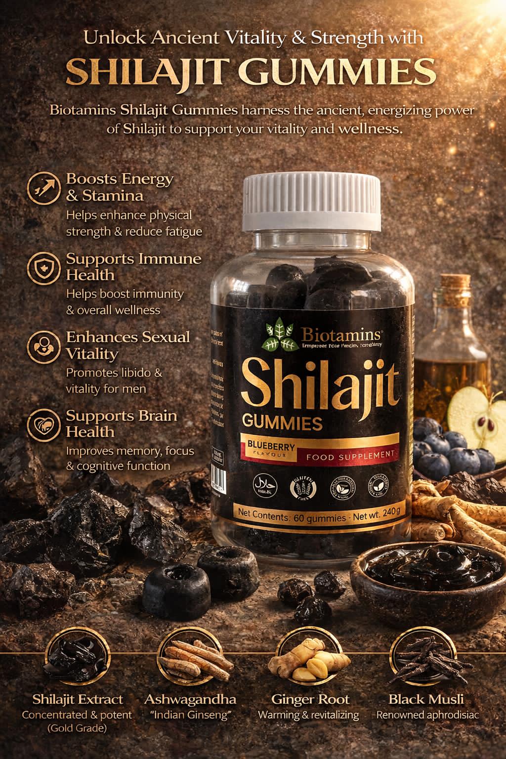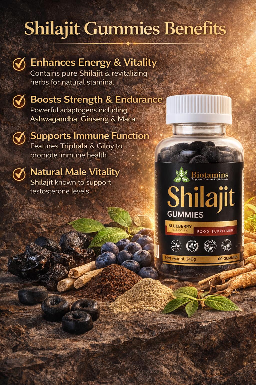 Our Shilajit Gummies combine traditional herbal extracts in a convenient and enjoyable gummy format.
